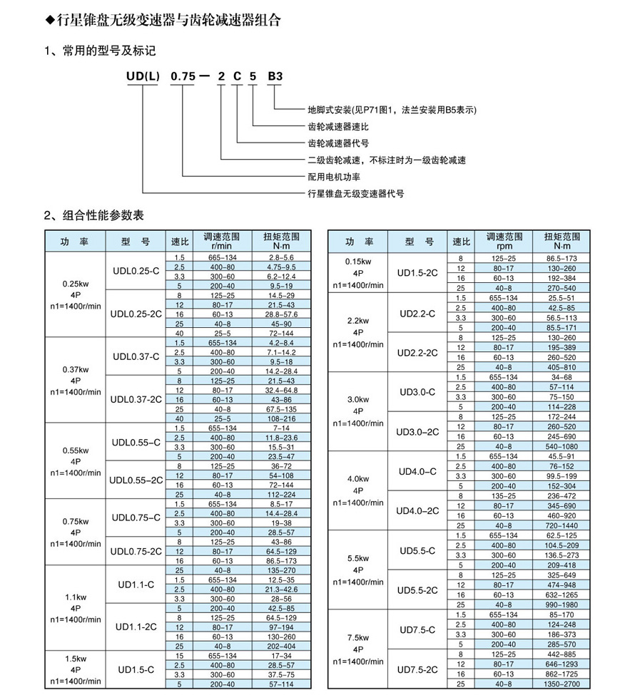 UD系列行星锥盘无级变速器